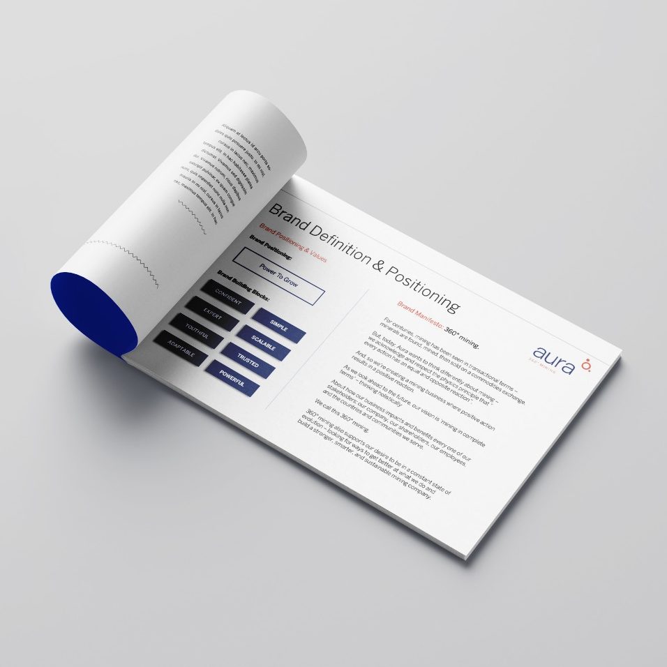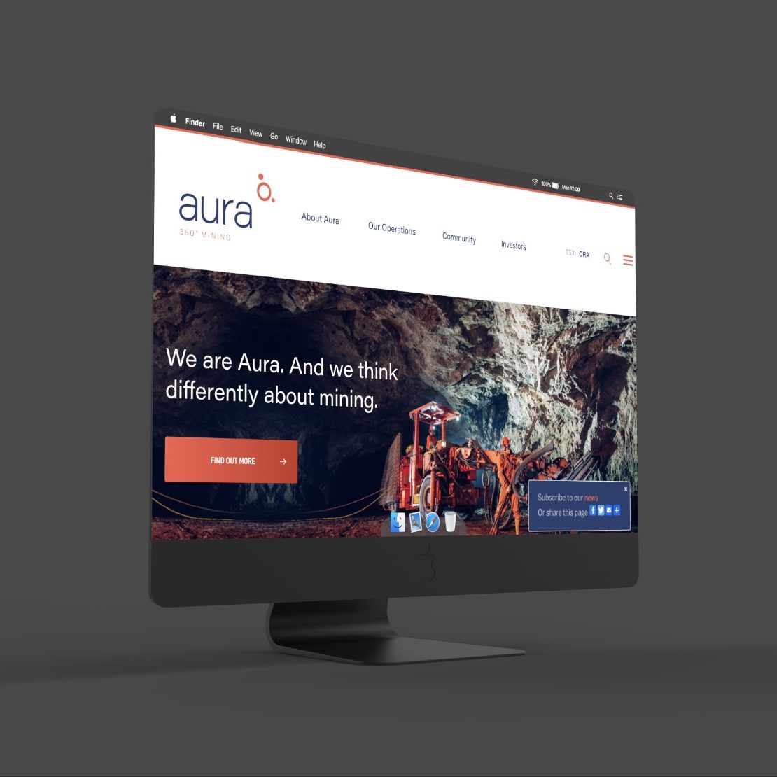 After the positioning was decided upon, we explored various new name options, but determined that the equity and legacy of the existing name were worth retaining, therefore we decided to simply shorten the name to “Aura’. We then created a new identity for Aura based on the 360 Mining positioning. Finally, we created a style guide and a new website to bring the new brand to life. The new brand refresh and website were launched in late 2019.