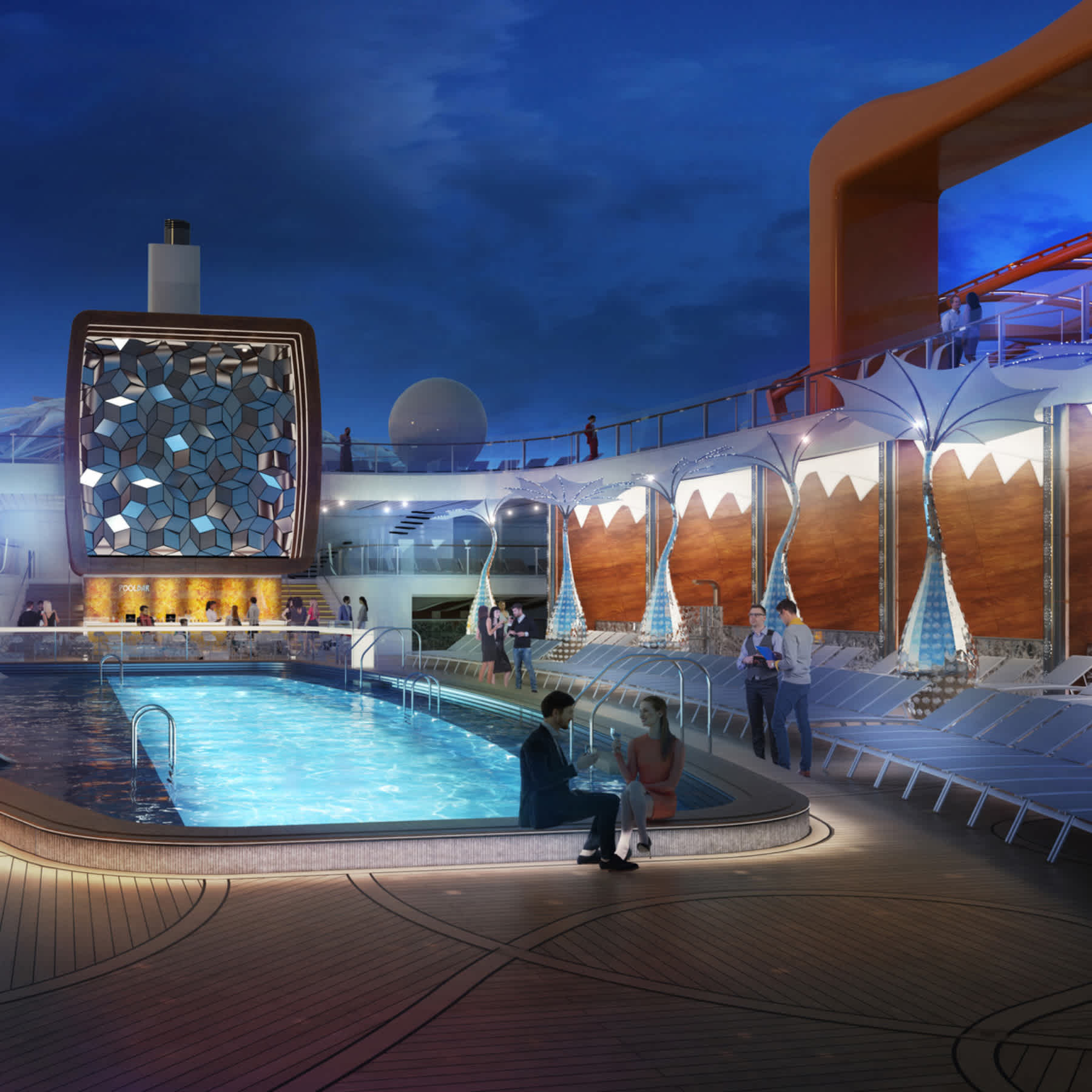 In late 2015, Celebrity announced that it was ordering four new ships in a new class—which would be the company’s largest vessels. Given our success with their sister company (Royal Caribbean), Celebrity approached us in 2016 to help name this new class of ship, as well as the ships themselves and numerous on-board elements and features.