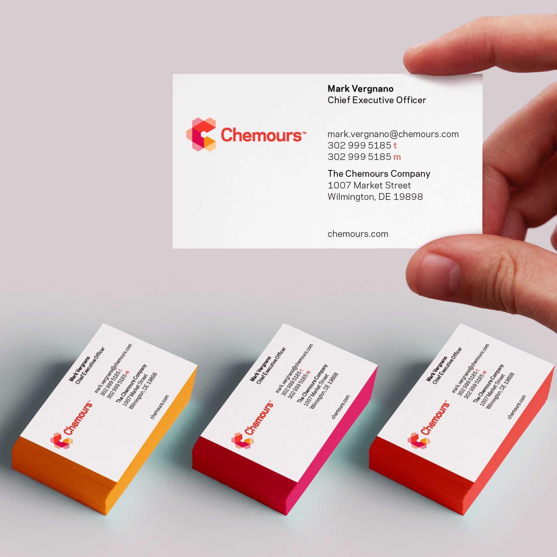 The name ‘Chemours’ was selected to suggest the vision and ideals: chemistry that belongs to all of us. It also embodies the company’s bond with customers and the shared focus that connects chemistry with their business goals. Additionally, the name Chemours subtly references Nemours – the town in France that was home to many members of the DuPont family.