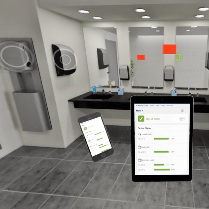 - Connected sensors are embedded into proprietary towel, tissue, soap dispensers and door counters.