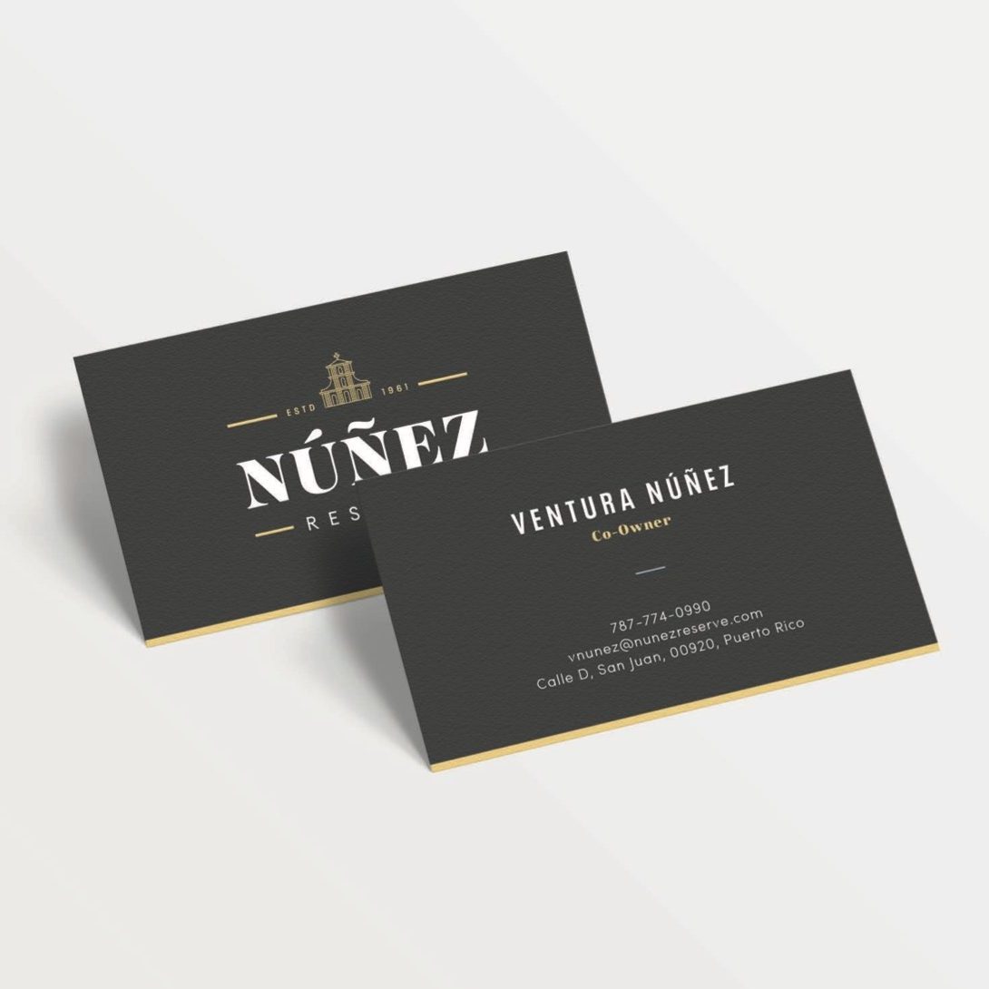 When we began creating the identity, the family asked that we explore options that paid homage to the heritage of Puerto Rico. After exploring dozens of historical details and landmarks, a final design was created that included an outline of the famous San Juan Bautista Cathedral–the oldest church in the United States, dating back to the 1500s–one of Puerto Rico’s most famous and recognized landmarks. Since Núñez Reserve would appeal to a new audience, we also added the established date of the company (1961) to the mark in order to reinforce the fact of their knowledge and experience.