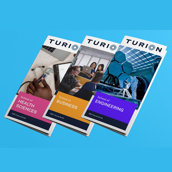 With the final name in hand, we began developing logo designs. We chose a stylized wordmark design with an embedded symbol in the “O” in Turion. The “complete O” symbol denotes comprehensive online learning capabilities. Lastly, we created the final Brand Guidelines ensuring a cohesive design system around the Turion brand is deployed.